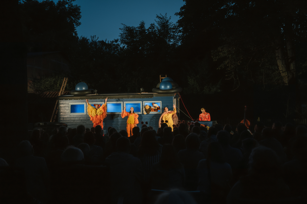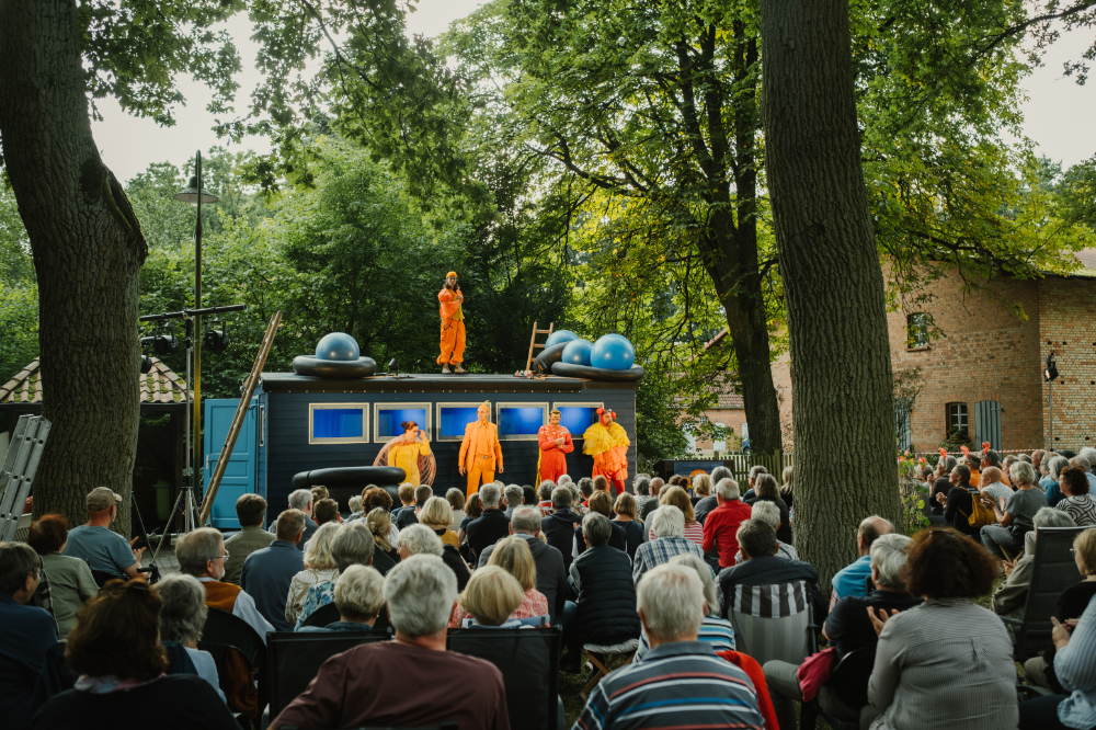 Diesen Sommer entern Aliens die Dorfplätze der Ostheide! Das Jahrmarkttheater verwandelt seinen Blauwagen in ein Raumschiff und feiert mit “Songs for Aliens” das Fremde! Die Open-Air-Show erzählt urkomisch und mit viel Musik von der Sehnsucht nach Zugehörigkeit und der Freude am Anderssein. Fünf Schauspieler und Schauspielerinnen spielen 74 Aliens und mehr als ein Dutzend Instrumente. Die Songs erzählen von der Schönheit der Milchstraße, von der Lust unterwegs zu sein und von allem, was Aliens und Menschen trotz aller Unterschiede verbindet. „Songs for Aliens“ ist ein herrlich schräges, poetisches und sehr musikalisches Open – Air – Theaterabenteuer!