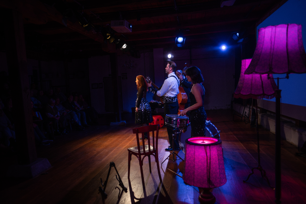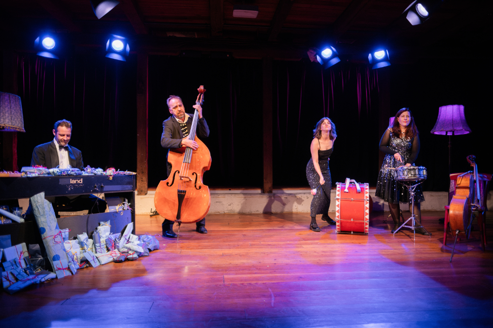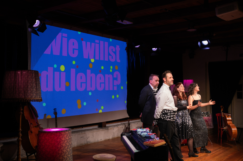 Anja Imig, Thomas Matschoss, Marit Persiel, India Eva-Maria Roth und Maurice Schneider, im Sommer noch als Aliens im Landkreis Uelzen unterwegs, packen ihre Instrumente aus, ölen ihre Stimmbänder und verwandeln das Jahrmarkttheater in einen glitzernden Ballsaal.